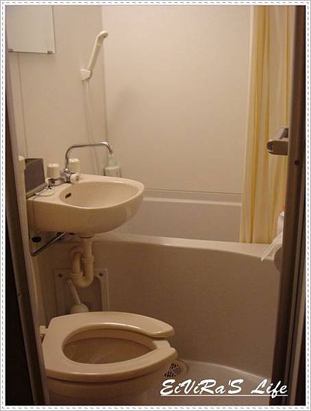 一進門的左手邊就是便所了,便所也是小小間,裡面有浴缸 & 洗手台 & 馬桶,該有的都有,通通擠進這小小間的空間裡