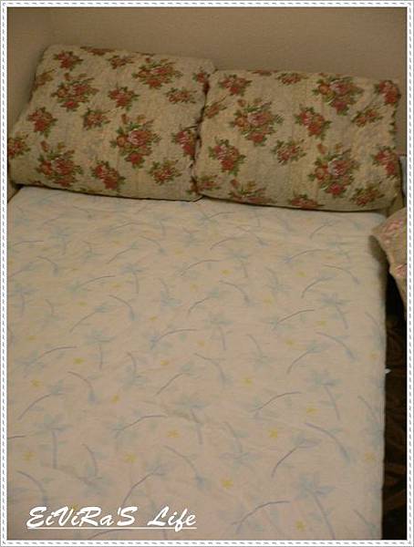 這是一個人的床位,我們睡四個人,四個床墊組合起來剛好是一個房間的寬度
