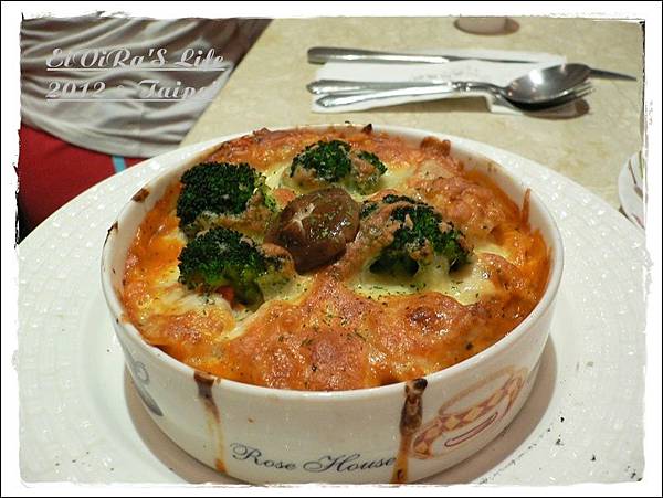 吃焗烤最怕的是很奶又很起土,但玫瑰園的焗烤裡面是咖哩飯,除了享受外面焗烤的皮,又可以享用咖哩飯,不用怕奶油的膩,整盤的份量吃完很飽